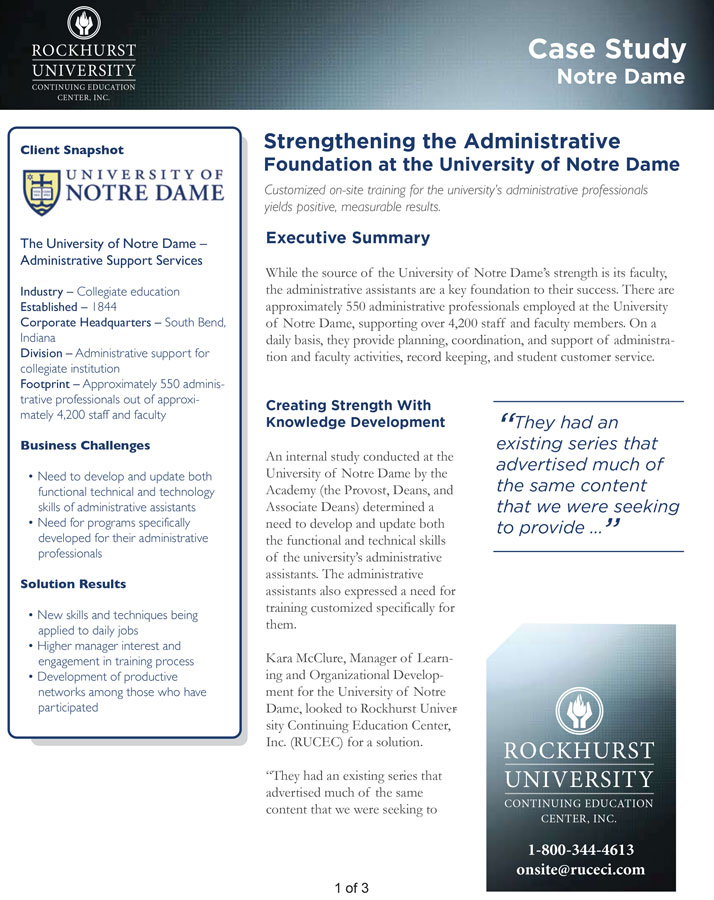 Case Study - National Seminars - Notre Dame Case study created for National Seminars/Rockhurst University to promote on-site training program.