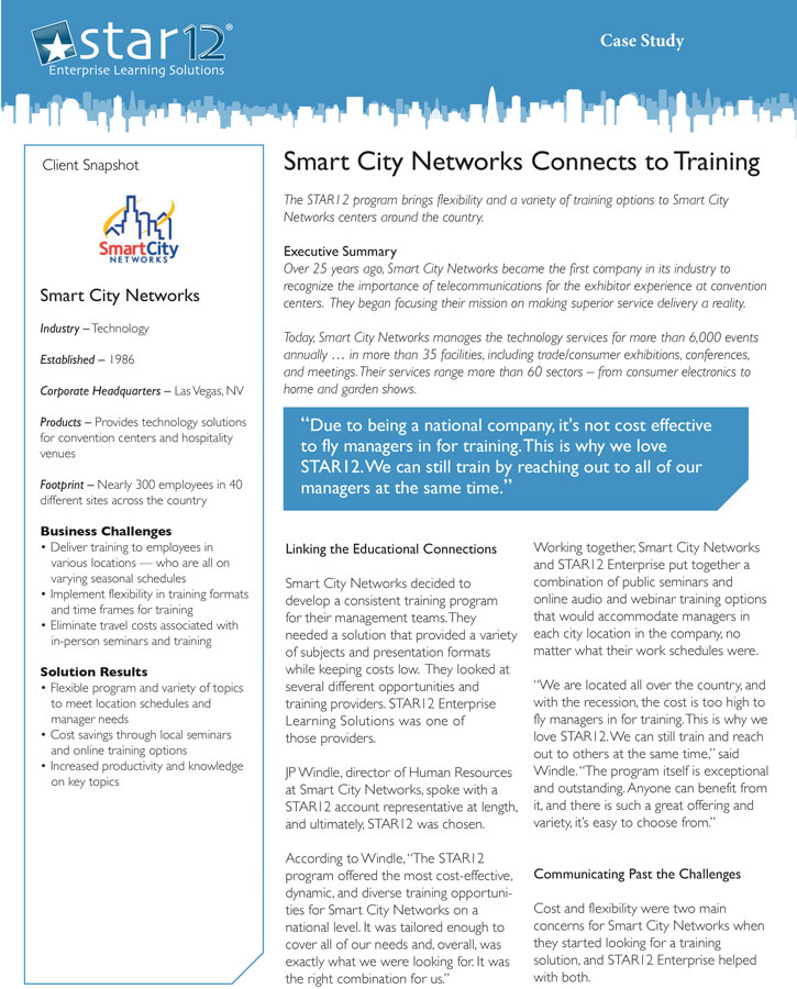 Case Study - National Seminars -Smart City Networks Case study created for National Seminars/Rockhurst University to promote STAR 12 online training