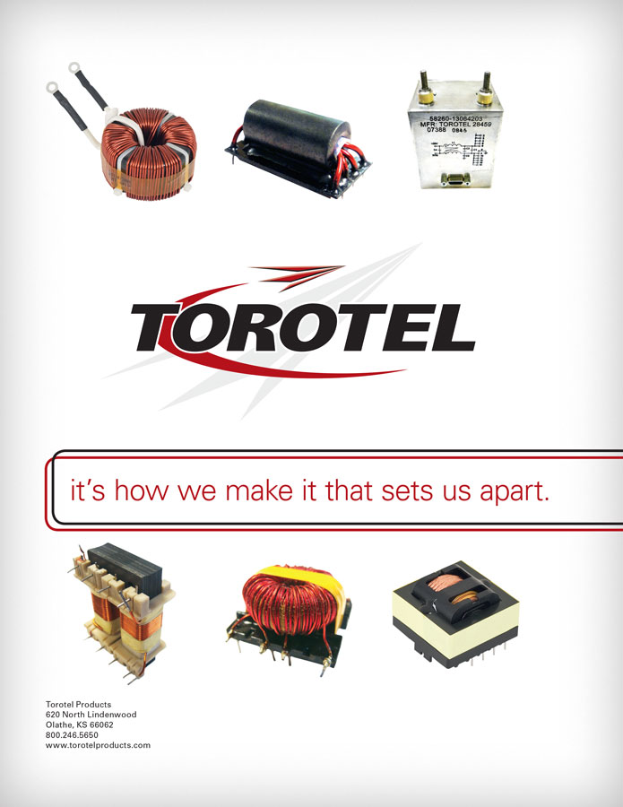 One Page Brochures - Torotel Two one-page brochures, created for distribution at an industry tradeshow. One is general information
